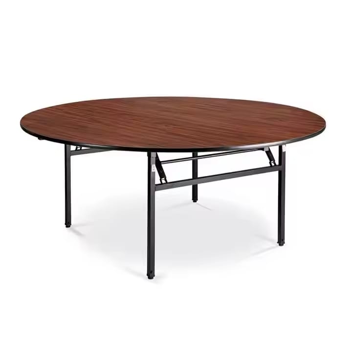 Bàn tròn gỗ 1m8 cao cấp gấp gọn phủ Laminate chống cháy.